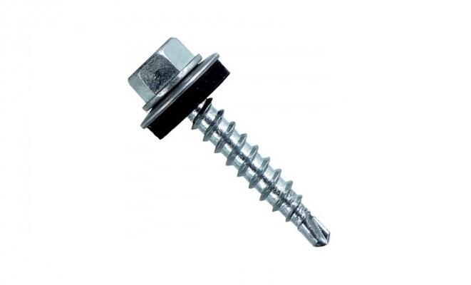 Саморез кровельный 5,5*38 сверло, цинк с шайбой