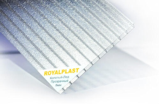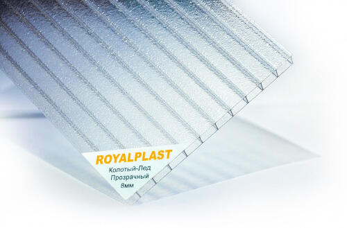Сотовый поликарбонат 8мм прозрачный «ROYALPLAST» Колотый Лёд – это современный строительный материал, который идеально подходит для создания светопрозрачных конструкций. Благодаря уникальной структуре и высококачественным материалам, он сочетает в себе прочность, долговечность и превосходные теплоизоляционные свойства.