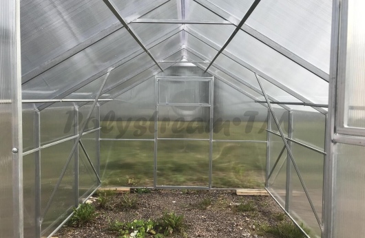 - Большой объем внутреннего пространства: Высокая двускатная крыша и прямые стенки дают возможность эффективно использовать пространство, выращивая большое количество саженцев одновременно.