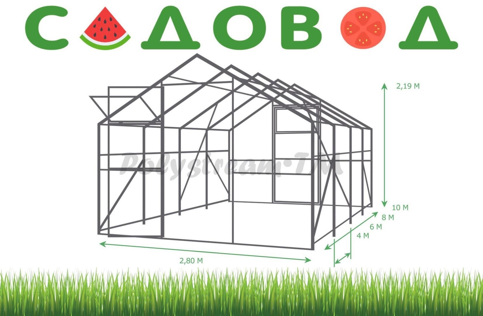 Теплица Садовод Кантри 6 м с поликарбонатом 4 мм 0,5 кг/м2