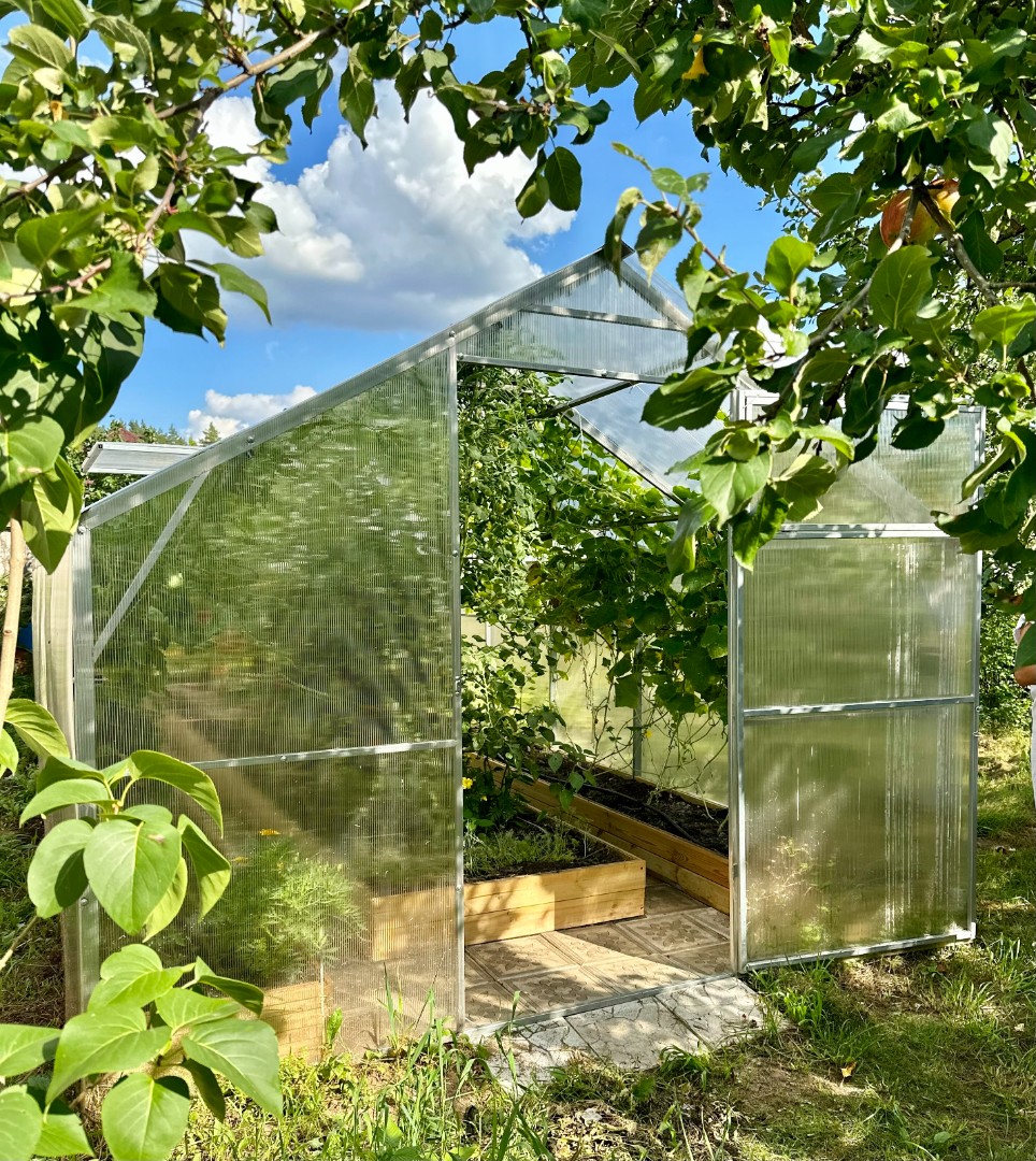 - Большой объем внутреннего пространства: Высокая двускатная крыша и прямые стенки дают возможность эффективно использовать пространство, выращивая большое количество саженцев одновременно.