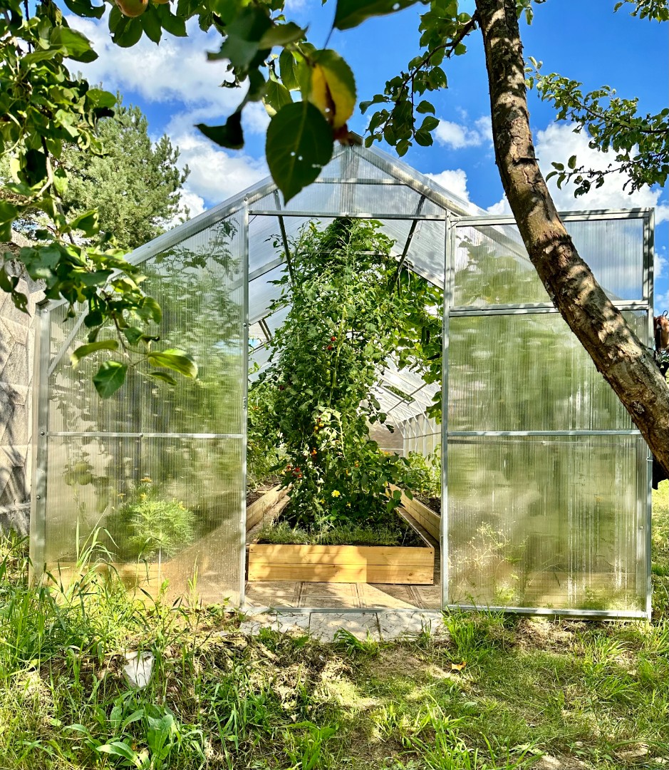 - Большой объем внутреннего пространства: Высокая двускатная крыша и прямые стенки дают возможность эффективно использовать пространство, выращивая большое количество саженцев одновременно.