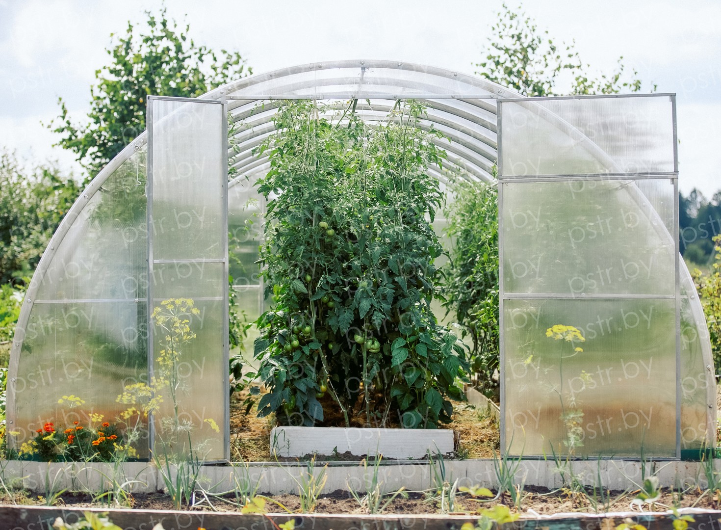- Равномерное распределение тепла, влаги и света: Поликарбонат создает идеальный микроклимат для растений, способствуя их быстрому росту.